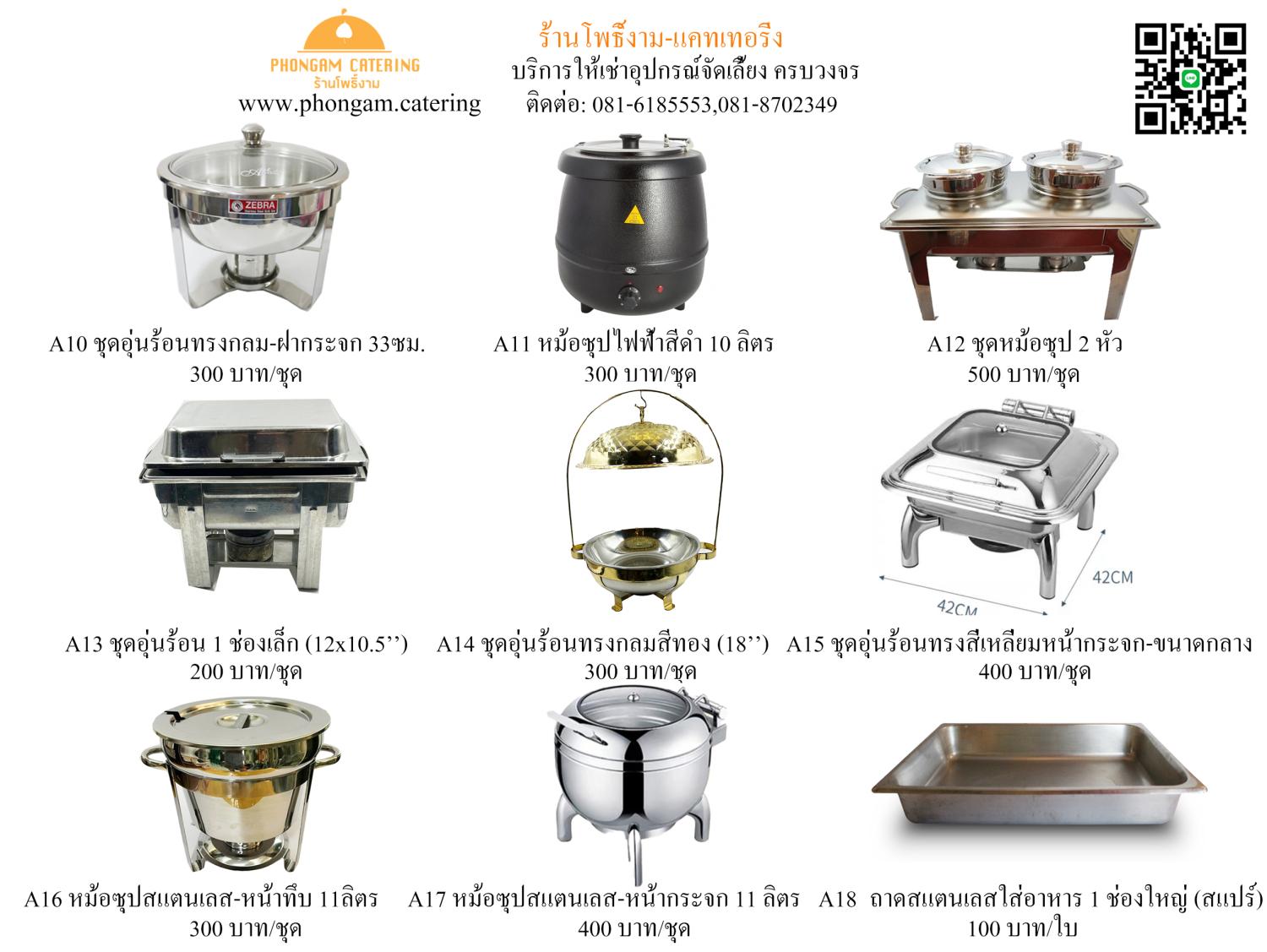 บริการให้เช่าอุปกรณ์จัดเลี้ยง ครบวงจร ไลน์อาหารบุฟเฟ่ต์ ค็อกเทล คอฟฟี่เบรค รวมถึงโต๊ะเก้าอี้จัดเลี้ยง สำหรับจัดงานอีเว้นท์-โรงแรม-ร้านอาหาร อุปกรณ์ถ้วยจานแก้ว รับประทานอาหาร มีอุปกรณ์รองรับแขกได้ถึงหลัก มากกว่า 1,000ท่าน